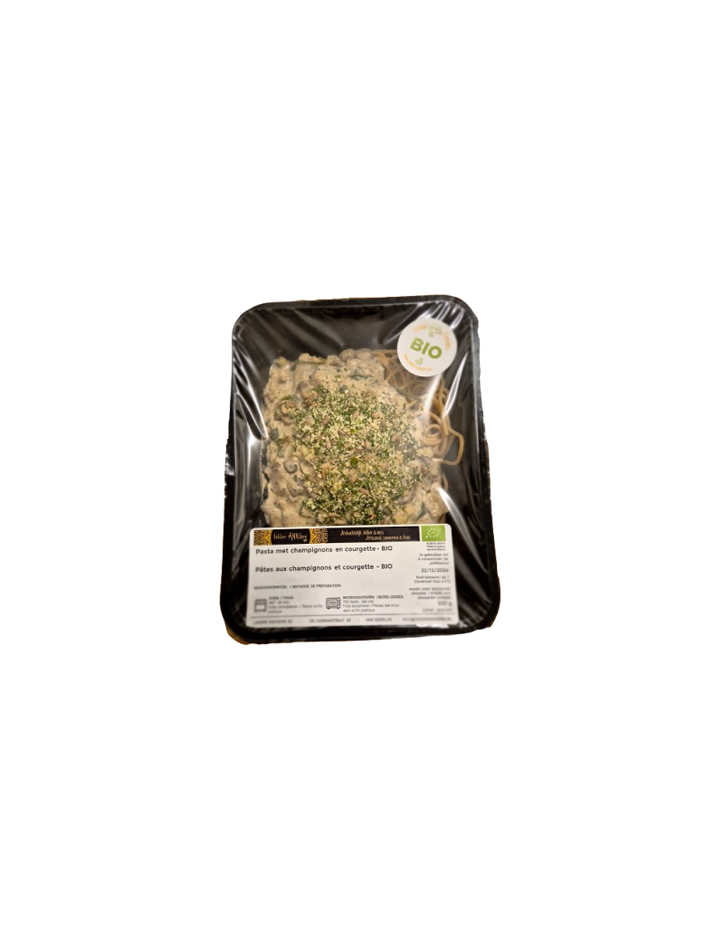 Een vegetarisch gerecht boordevol smaak: volkoren spaghetti met een romige saus van champignons (28%), courgette en spinazie, afgewerkt met Parmezaanse kaas en witte wijn. Een verfijnde combinatie van groenten en kaas voor een evenwichtige en heerlijke maaltijd. Klaar om op te warmen, ideaal voor een snelle en smaakvolle lunch of diner.