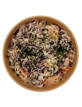 De Tropical Coleslaw geeft een exotische twist aan de klassieke koolsalade dankzij de toevoeging van ananas. Wortels, kleurrijke kolen en Griekse yoghurt zorgen voor een frisse, lichtzoete en knapperige combinatie, verfijnd met een vleugje zwarte sesam.
