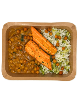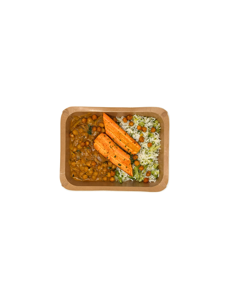 De Curry Madras combineert rijst, kikkererwten en knapperige groenten met de romige rijkdom van kokosmelk en een mix van Indiase kruiden. Een volledig vegetarisch gerecht, smeuïg en smaakvol, dat warmte en balans brengt bij elke hap.