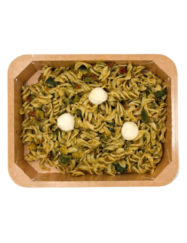 Fusillisalade met courgette, mozzarella en zongedroogde tomaten, op smaak gebracht met aromatische kruiden en een vleugje knoflook. Fris en Italiaans geïnspireerd.