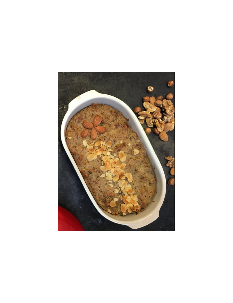 Pâté aux noix. Un festin à base de différentes sortes de noix. Contient de la farine d'épeautre. Végétarien. Disponible en 4 fois 100 g ou en terrine d' 1 kg. Vers en Veggie prépare des tartinables, des quiches et des plats préparés végétaliens à base de légumes et d'herbes aromatiques bio, cultivés par les agriculteurs de la région.