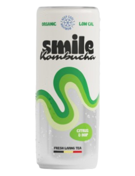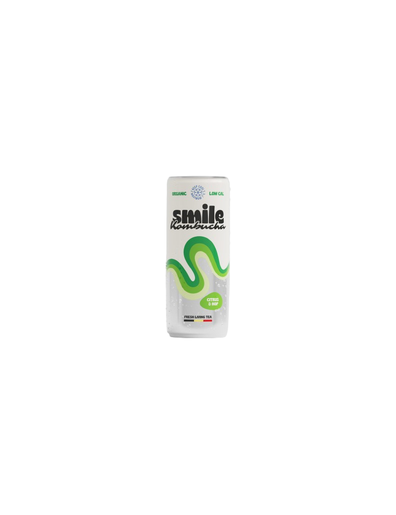 De hoppige kombucha van Smile: IPA-achtige smaken, zonder spijt. De brouwtraditie van ons land heeft ons geïnspireerd tot deze variant. Citrusvruchtenschil, grapefruit en hop zorgen voor fruitige aroma's en een subtiele bitterheid. Bijna als een pint, met een glimlach op je gezicht.