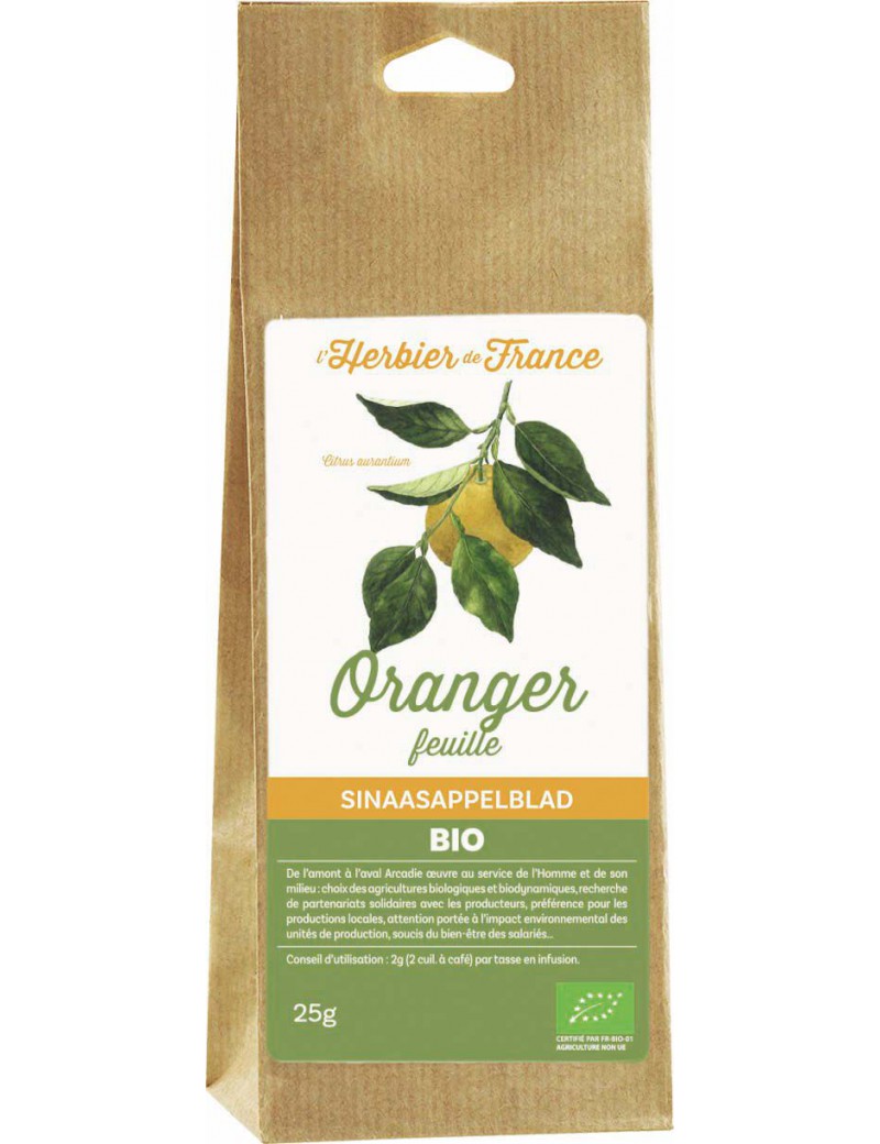 OMSCHRIJVING: bladeren van de bekende vruchtenboom. Moeten absoluut van biologische origine zijn, want de gangbare sinaasteelt is vergeven van de chemische producten.TRADITIONEEL GEBRUIK: kalmeert zenuwen en bevordert de slaap. Bij hartkloppingen gebruikenBEREIDINGSWIJZE: infusie: 3 à 4 blaadjes per kopje kokend water, 15' laten trekken.