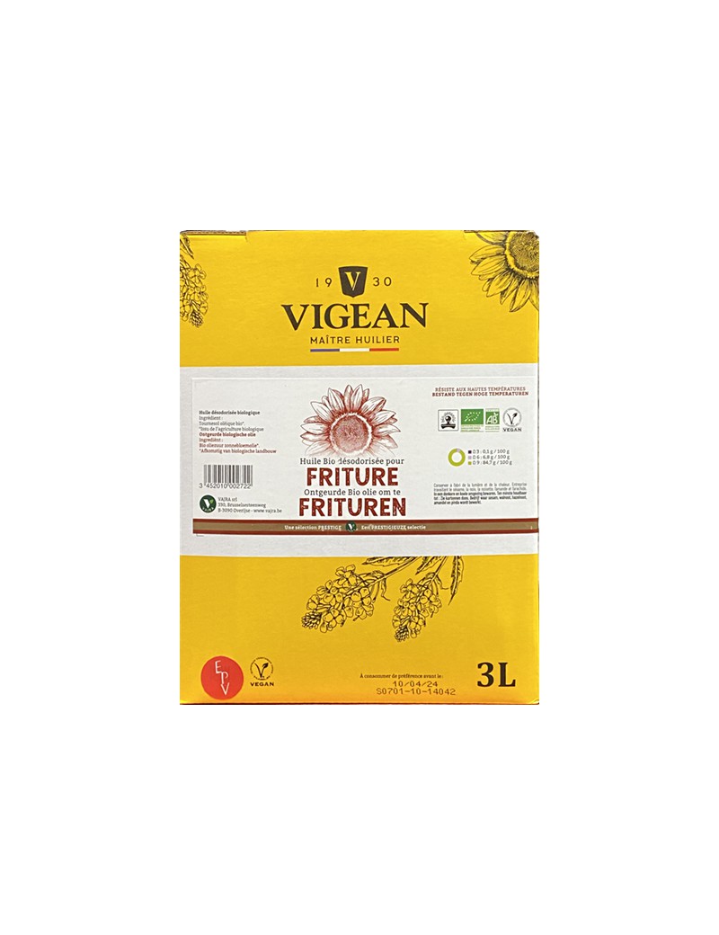 Deze olie met neutrale smaak wordt gewonnen uit oliezuur zonnebloemolie, die bijzonder bestendig is tegen frituren op hoge temperaturen. Om de smaak van uw frituurbereidingen niet te wijzigen, wordt deze eerste persing olie vacuüm ontgeurd door een puur mechanisch proces van waterstoominjectie. Deze zacht smakende olie wordt vooral aanbevolen voor het frituren of koken op hoge temperatuur.