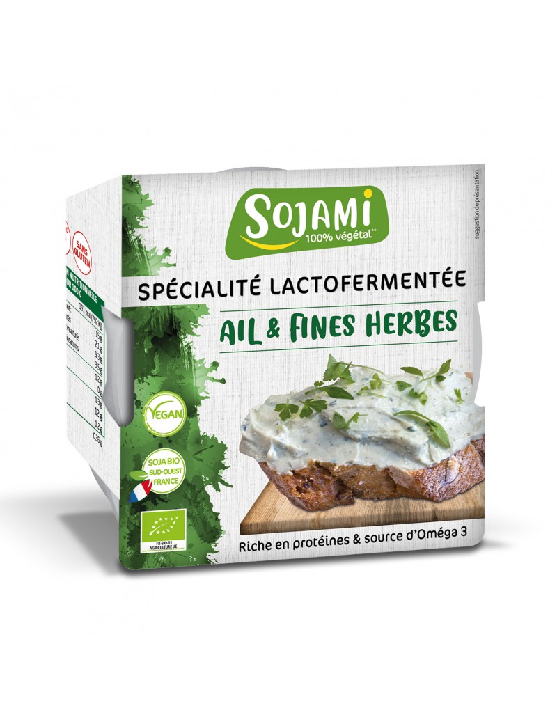 Een heerlijke spread, subtiel en smaakvol, deze Sojami mengt de kracht van knoflook met de zoetheid en frisheid van fijne kruiden in perfecte balans. Deze verse 100% plantaardige specialiteit kun je smeren als een kaas, dippen of gebruiken als ingrediënt in je voorgerechten, sauzen en soepen. De romige, gastronomische textuur zorgt voor een smakelijke, gezonde en licht verteerbare eetervaring. De bereiding is gemaakt van biologische en lokale lacto-gefermenteerde soja. Het is de ideale bondgenoot van genot en gezondheid: rijk aan eiwitten, bron van Omega 3, glutenvrij, lactosevrij, cholesterolvrij en GMO-vrij.