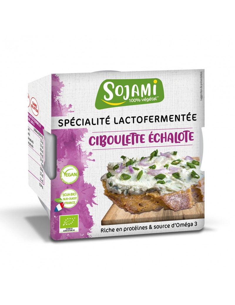Aromatisch en delicaat, de bieslook voegt een frisse, licht zure noot toe aan deze Sojami, terwijl de sjalotten een milde, licht kruidige toets toevoegen. Een perfecte balans om je smaakpapillen wakker te schudden! Deze verse 100% plantaardige specialiteit kun je smeren als een kaas, dippen of gebruiken als ingrediënt in je voorgerechten, sauzen en soepen. De romige, gastronomische textuur zorgt voor een smakelijke, gezonde en licht verteerbare eetervaring. De bereiding is gemaakt van biologische en lokale lacto-gefermenteerde soja. Het is de ideale bondgenoot van genot en gezondheid: rijk aan eiwitten, bron van Omega 3, glutenvrij, lactosevrij, cholesterolvrij en GMO-vrij.