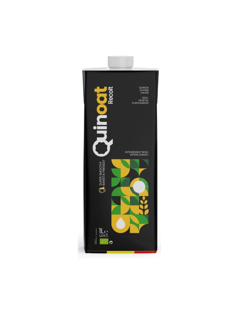 QUINOAT Deze plantaardige drank op basis van quinoa en haver is een echte publiekstrekker en een waar genot voor de barista. Hij is gezond, geschikt voor het hele gezin op elk moment van de dag en vervangt gemakkelijk zuivelproducten bij het koken. De haver geeft de drank een natuurlijke zoete smaak en de quinoa een romig schuim. 100% lokale productie van Belgische of Europese biologische granen en quinoa, afhankelijk van de oogst