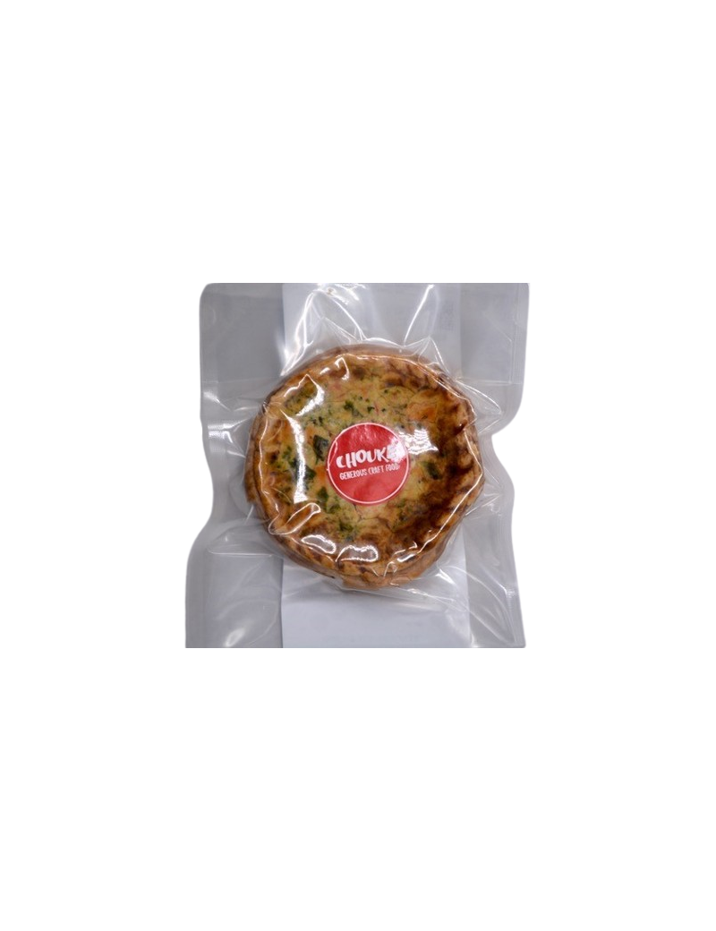 Een klassieke biologische quiche: goudbruin deeg, romige room, eieren en gerookt spek met IGP-label. Heerlijk en klaar om op te warmen.