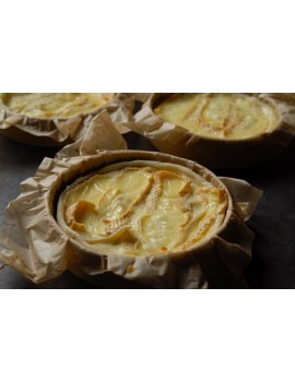 Geniet van deze zelfgemaakte biologische tartiflette quiche gemaakt met kwaliteitsingrediënten. Het knapperige, goudgele deeg, gegarneerd met een fondue van spekjes, aardappelen en kaas, maakt dit gerecht even troostrijk als heerlijk. Perfect voor een complete maaltijd of een hartige pauze.