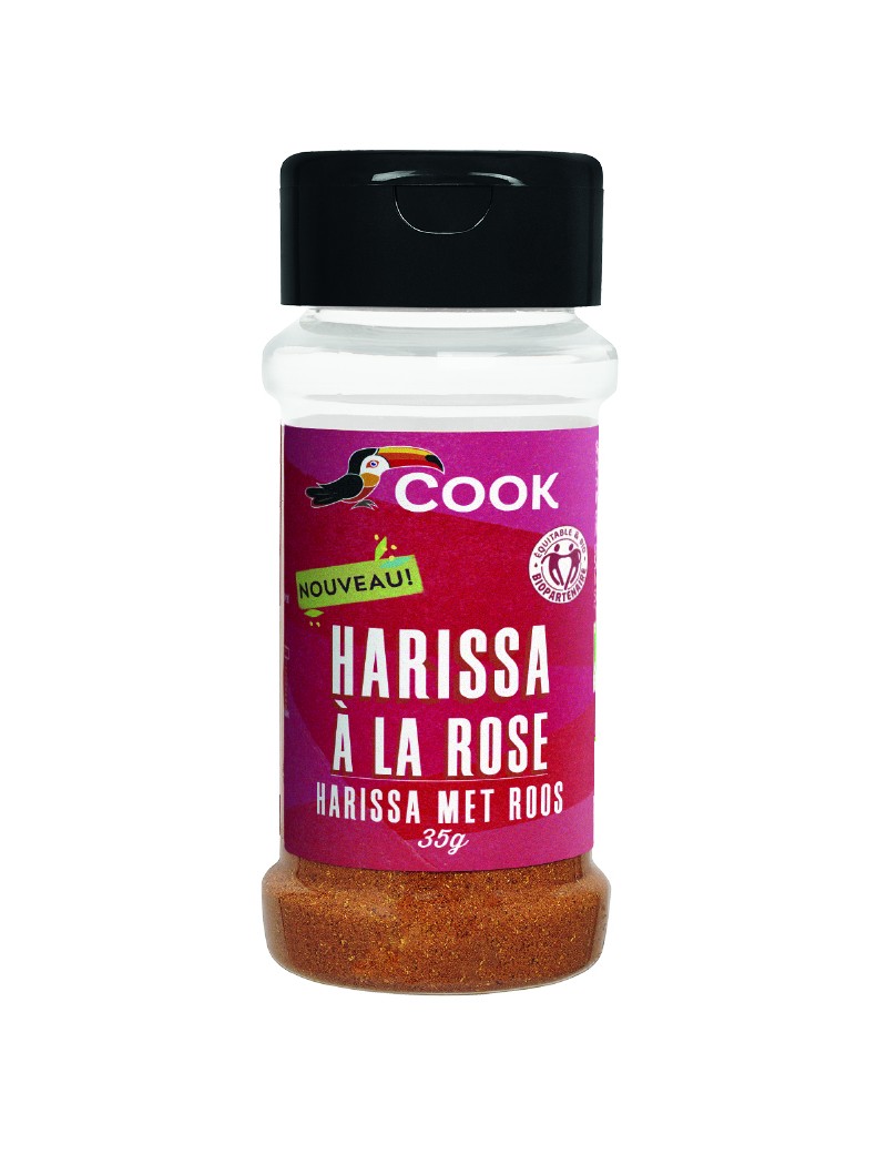 Harissa mix met roos is een variatie op de traditionele Tunesische harissa, gemaakt van hete pepers, knoflook, koriander, karwij, olijfolie en gedroogde rozenblaadjes. Het is veelzijdig en kan worden gebruikt om veel gerechten te kruiden, zoals couscous, tajines, sauzen en gebakken groenten. De bloemige noten van de roos verzachten de pittige smaak van de harissa.