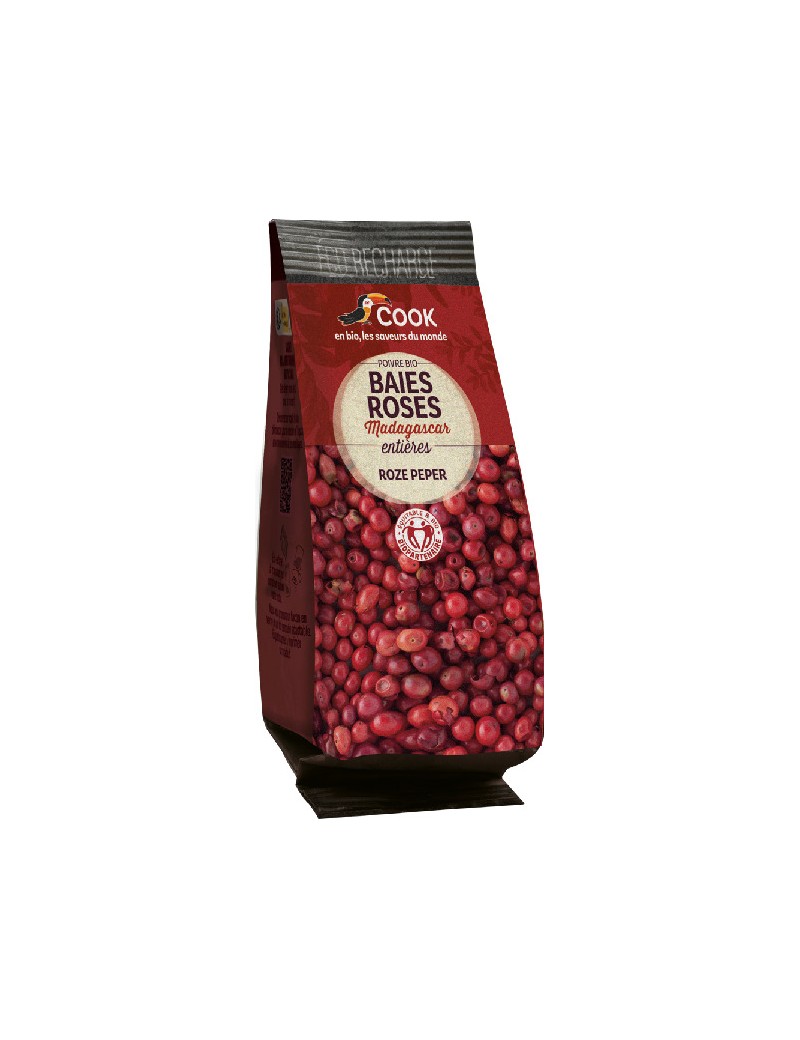 De roze bessen worden voornamelijk op het eiland Réunion geteeld. Hun smaak verdwijnt snel. Hun aroma is meer aromatisch dan pittig en wordt in veel hartige gerechten gebruikt ter decoratie of als subtiele smaakmaker.