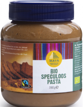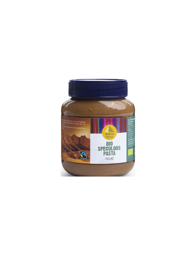 Een zachte biologische smeerpasta gemaakt met 50% speculoos, fairtrade palmolie uit Ghana en fairtrade honing uit Brazilië.