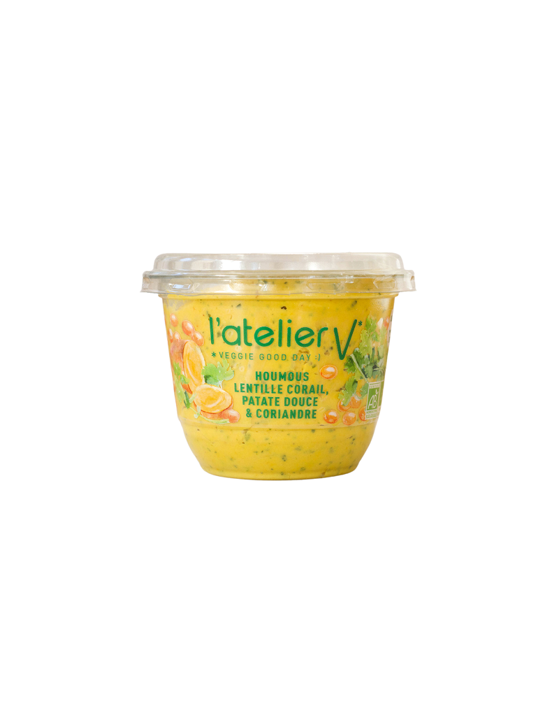 Koraal linzen, zoete aardappel & koriander hummus(150 gr)