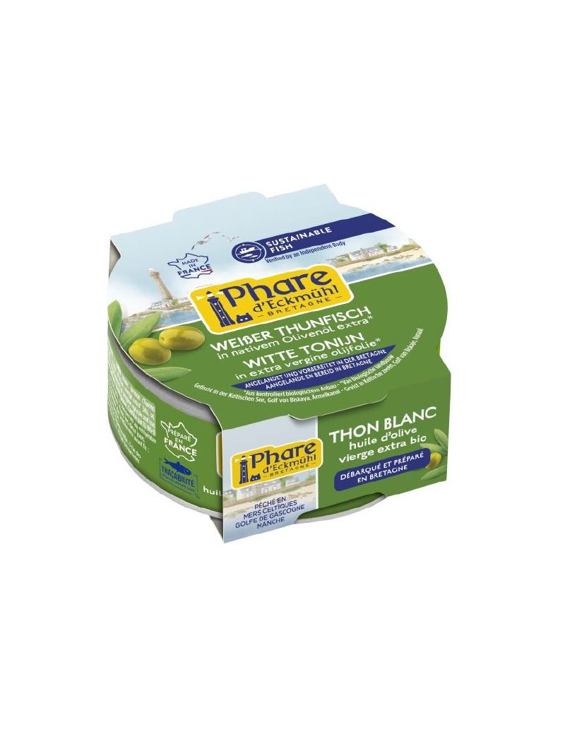 Deze witte tonijn (germon), afkomstig uit verantwoorde visserij in de Noordoost-Atlantische Oceaan, is bereid met extra vierge olijfolie. Rijk aan eiwitten en omega 3, combineert hij authentieke smaak en voedingskwaliteit.