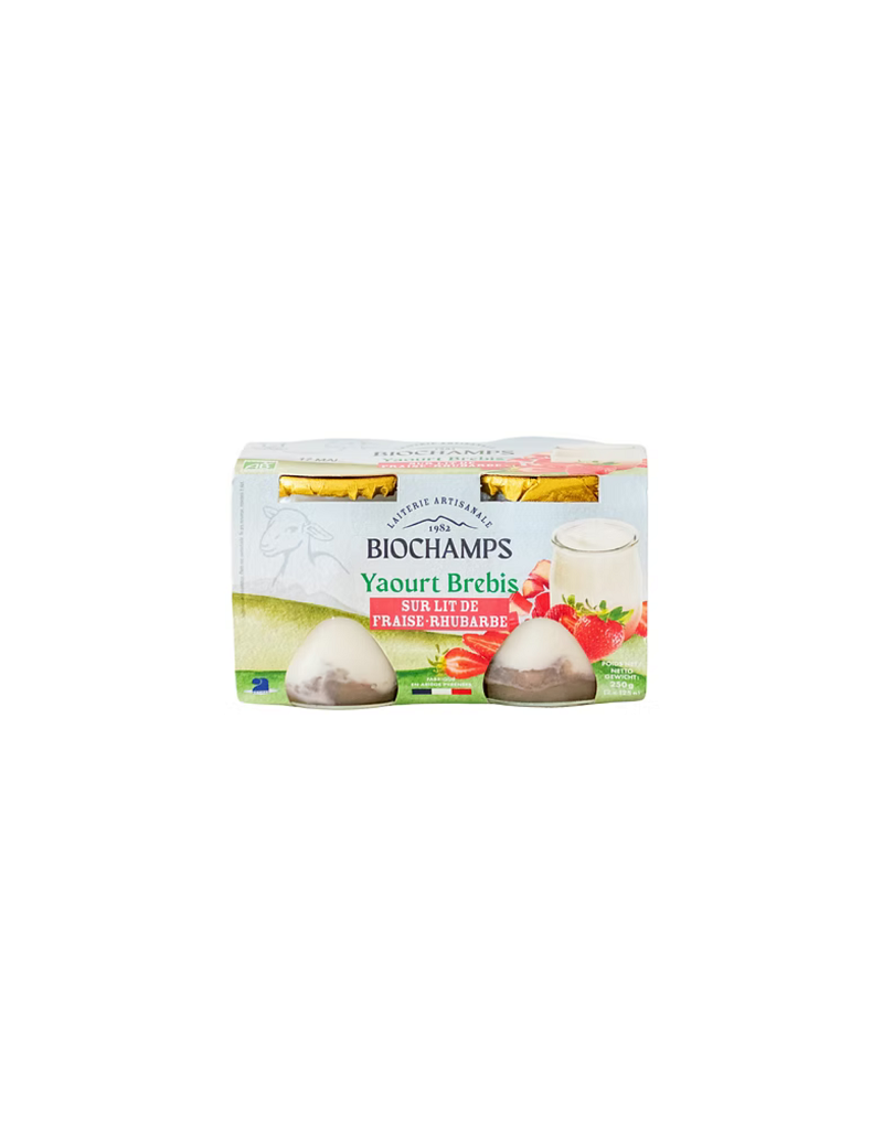 Een romige biologische schapenyoghurt met een laagje van Franse aardbeien en rabarber. De gladde textuur en het evenwicht tussen zoet en zuur maken dit dessert tot een verfrissende en natuurlijke traktatie. Gezoet met fairtrade rietsuiker.