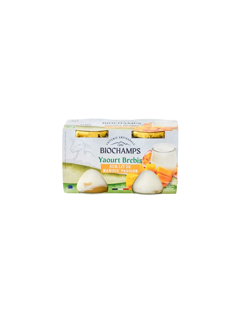 Een zachte, exotische yoghurt op basis van Franse biologische schapenmelk, verrijkt met een fruitige laag van mango en passievrucht. Gezoet met fairtrade rietsuiker en met een gladde textuur, is dit een zonnig en natuurlijk dessertmoment.
