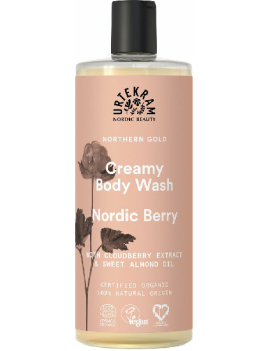 Biedt rijke, voedende verzorging en hydratatie tijdens en na het douchen. Met bergframbozenextract, biologische aloë vera, biologische amandelolie, biologische sheaboter en biologische kokosolie. Voor de normale tot droge huid Met een fruitige, frisse geur Ideaal als vervangingsproduct voor Spicy Orange Blossom lichaamsverzorging Sterk merk dankzij Scandinavisch hoofdingrediënt Gecertificeerd door EcocertCOSMOS ORGANIC, veganistisch Fles gemaakt van gerecycled en recyclebaar plastic Tubes gemaakt van >50 % plantaardig plastic